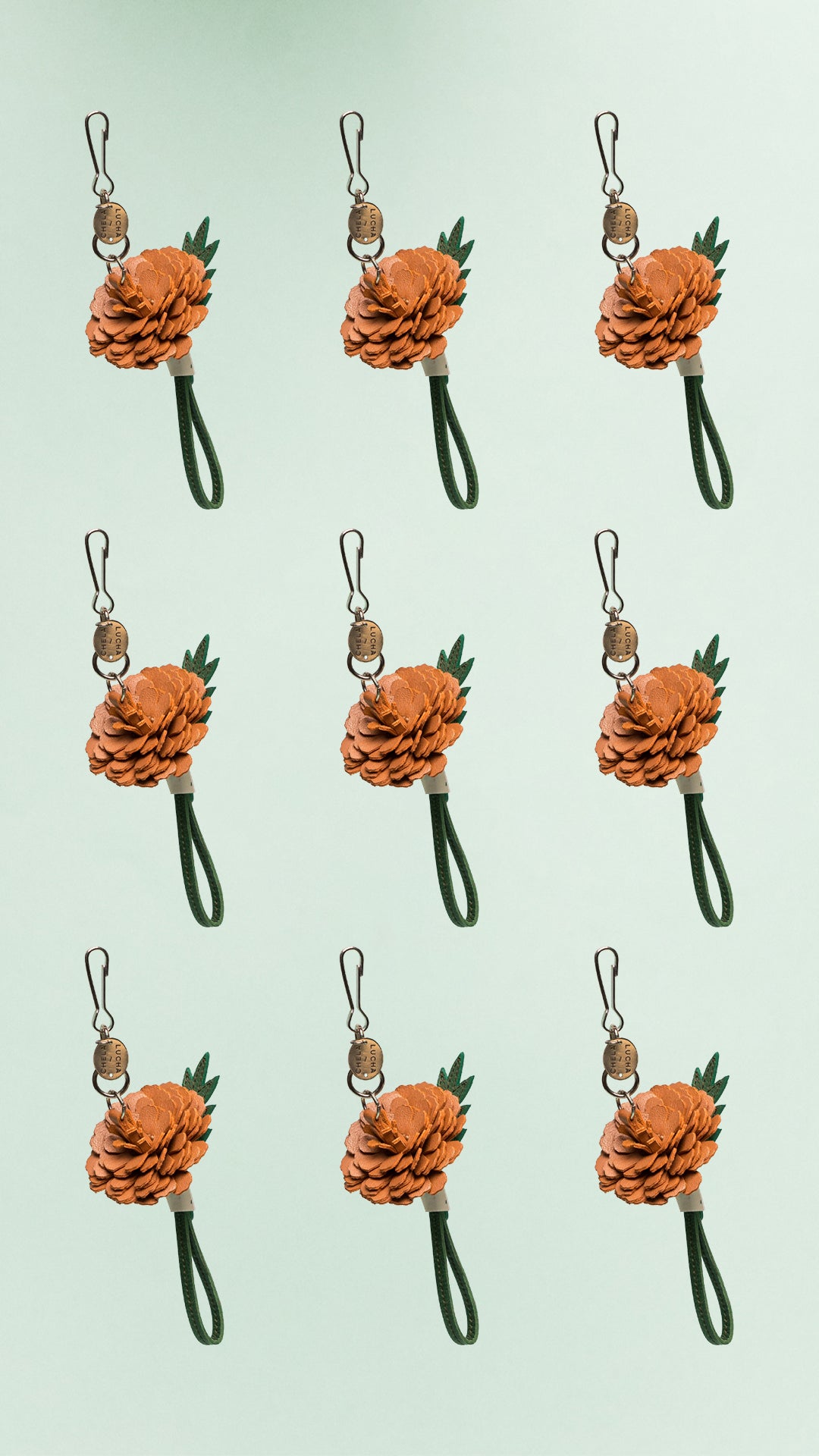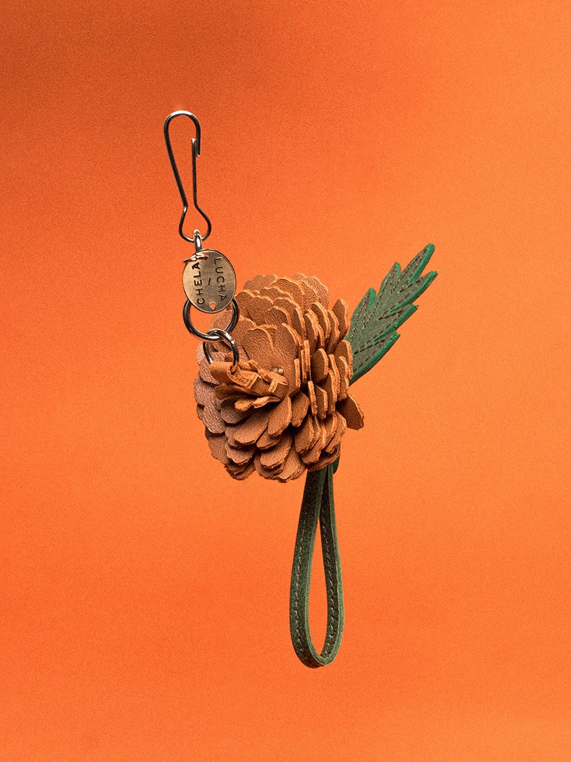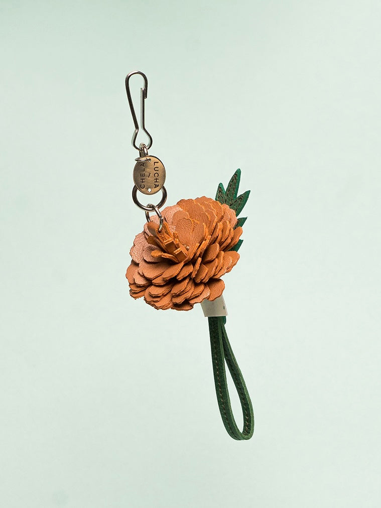 Llavero / charm edición limitada día de muertos. Hecho con pedacera de piel en tonos naranja y verde.