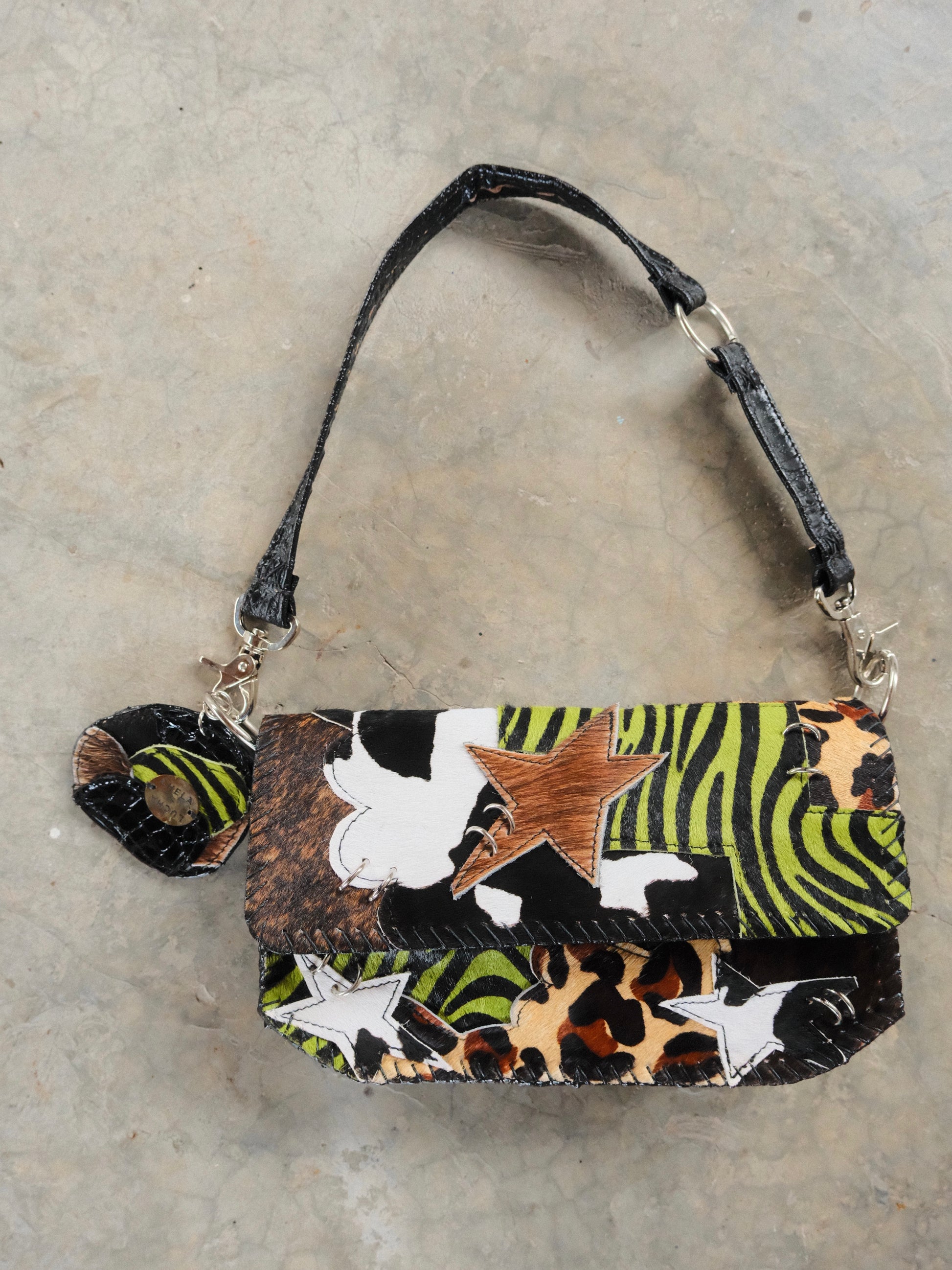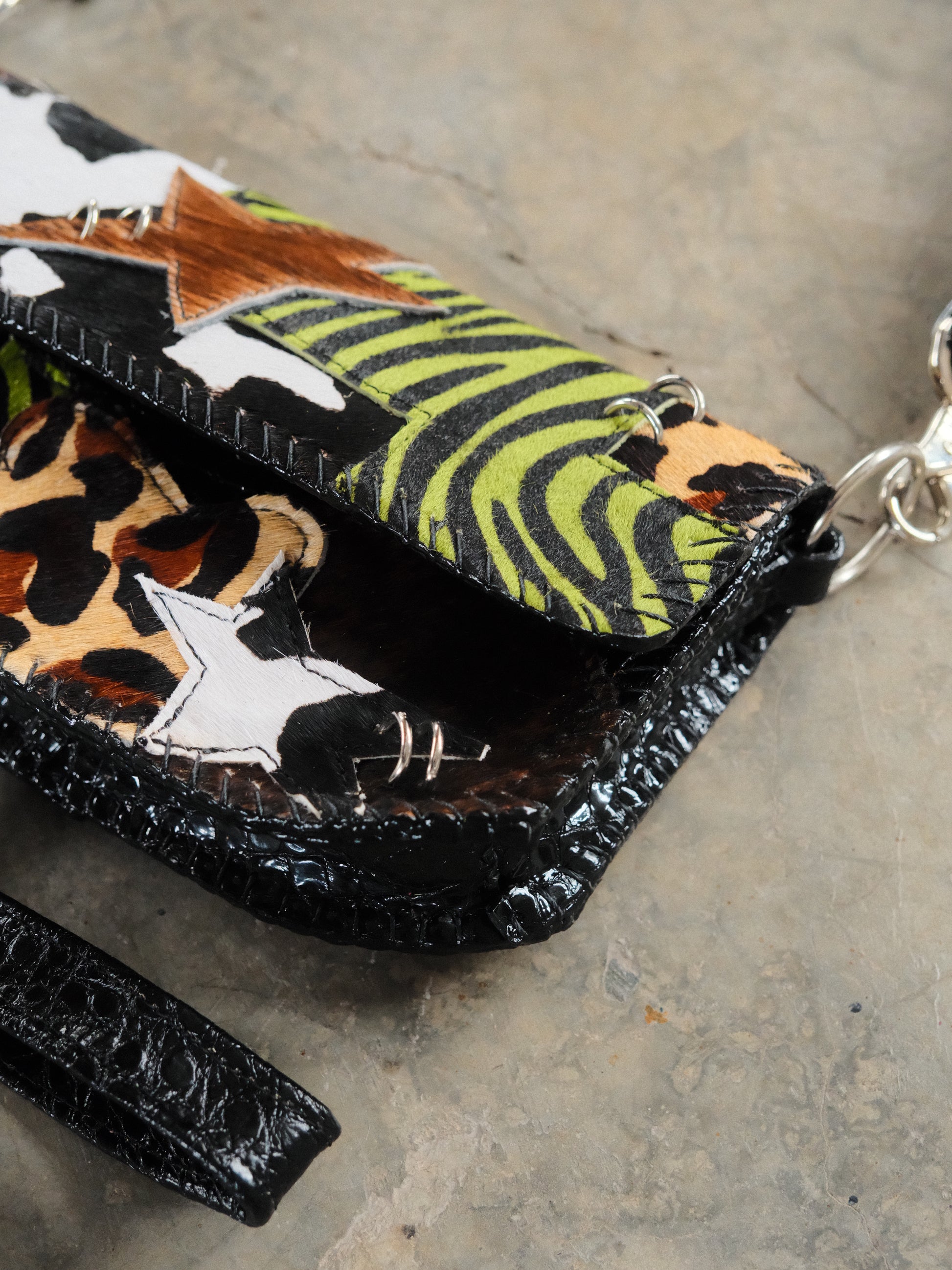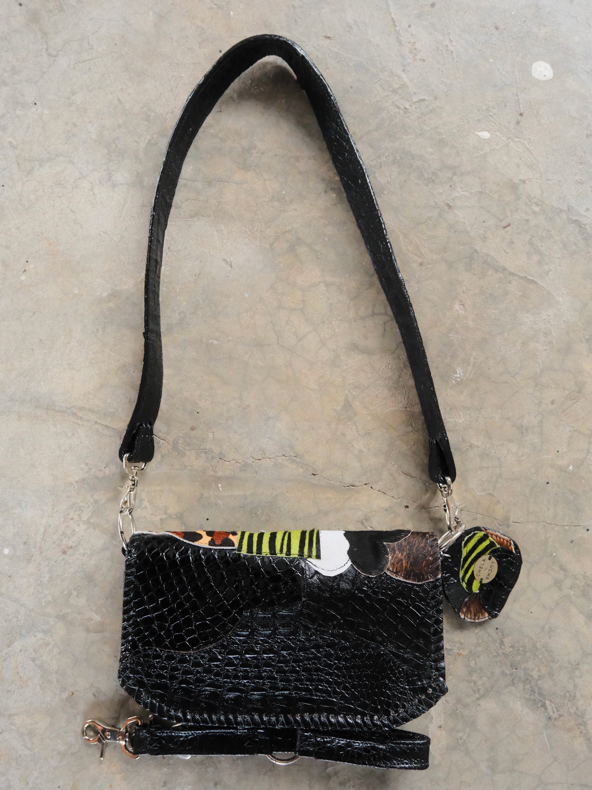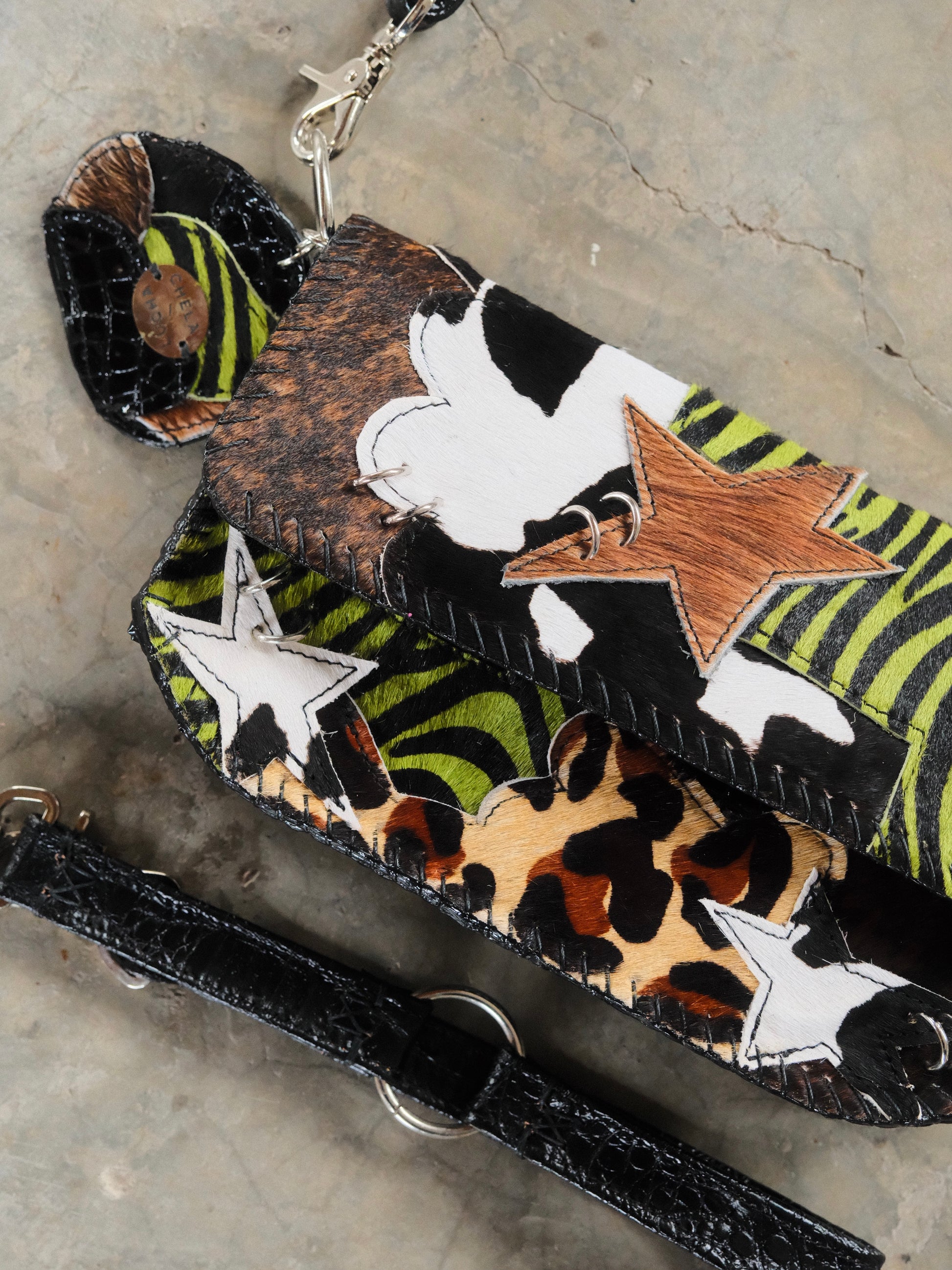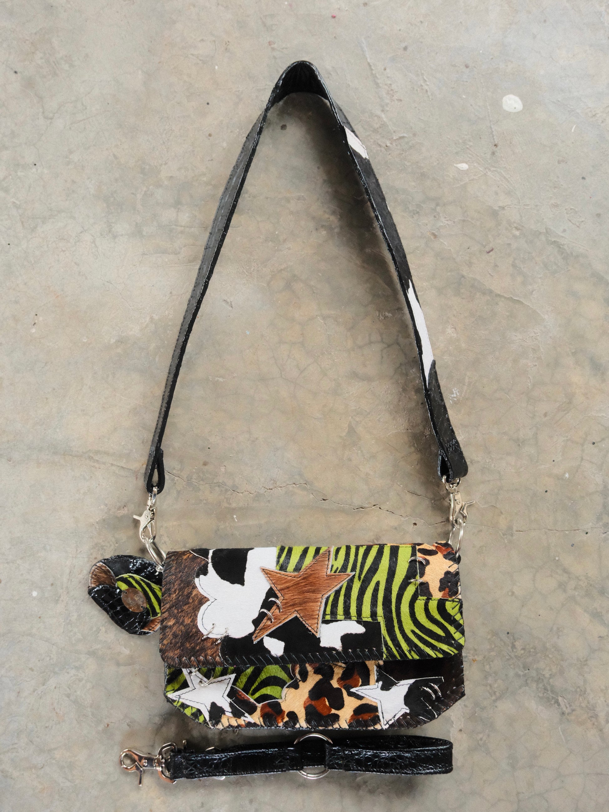 Bolsa LUPE hecha con pedacera de piel en tonos y texturas variadas.