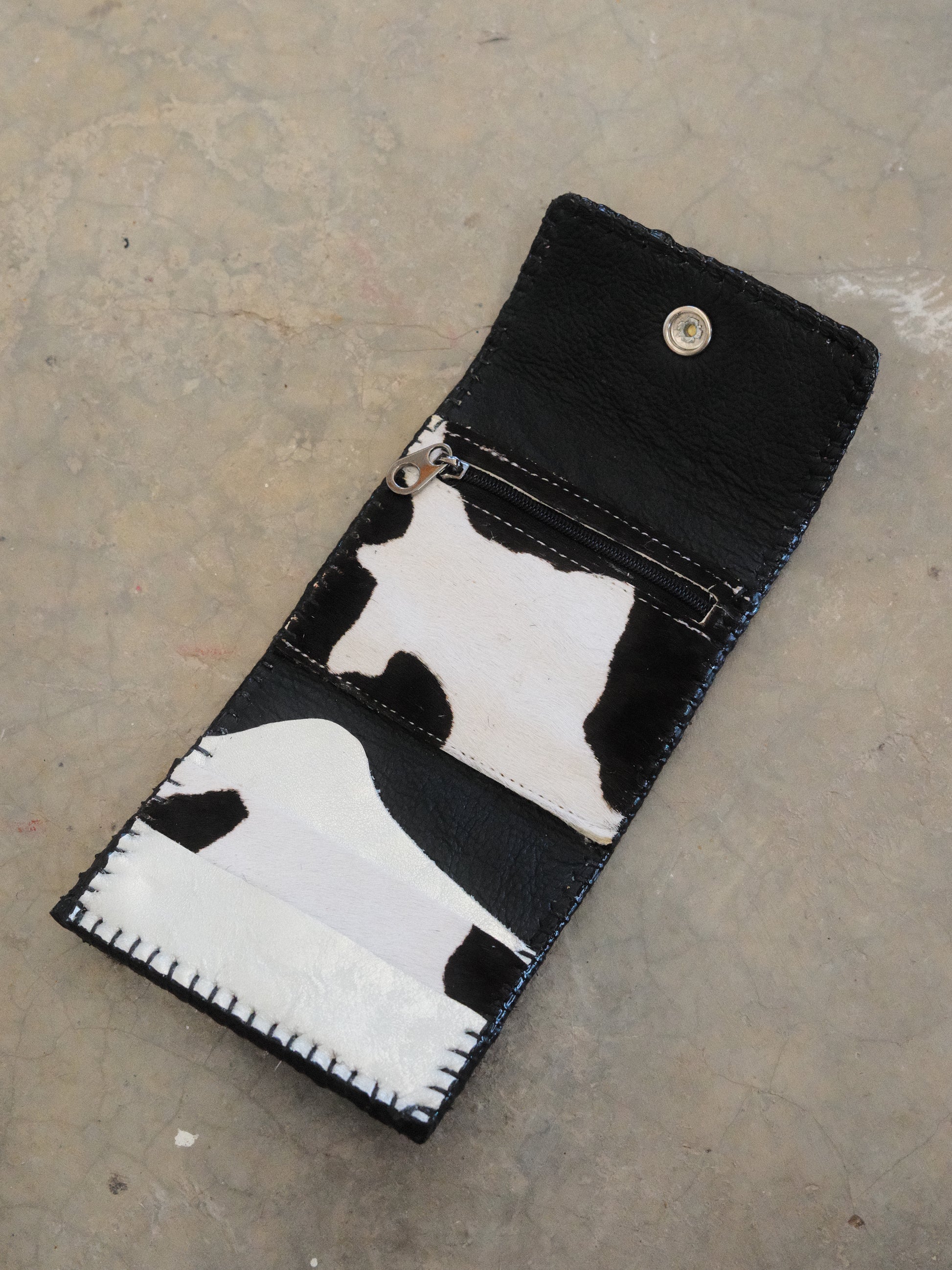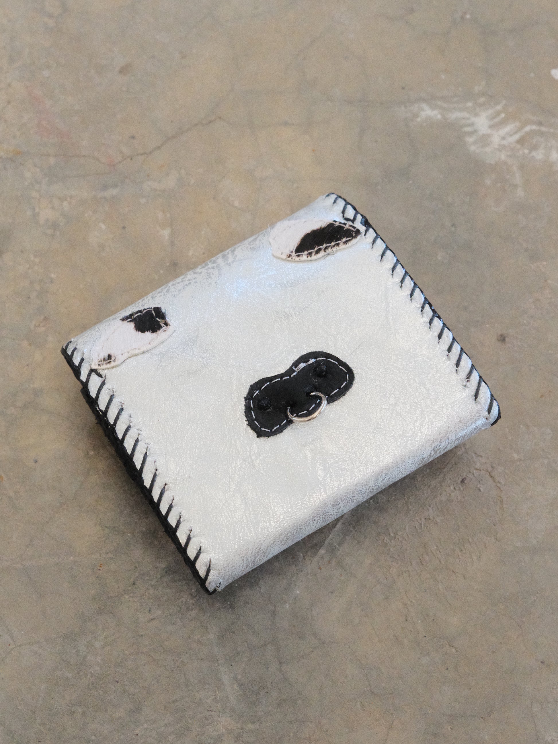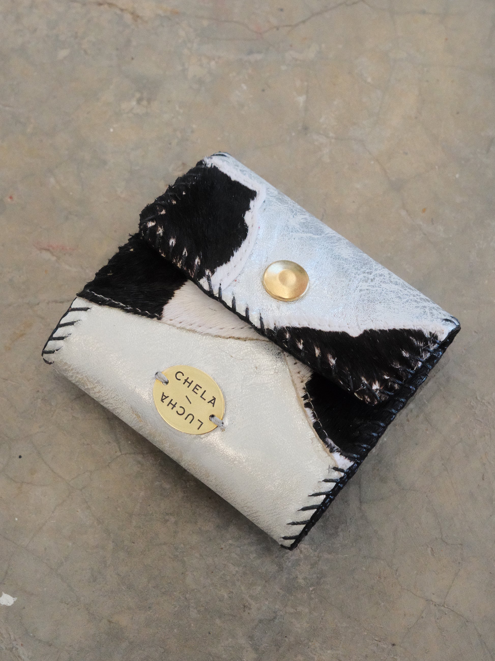 Cartera TUTI hecha con pedacera de piel en tonos plateado y textura de pelito.