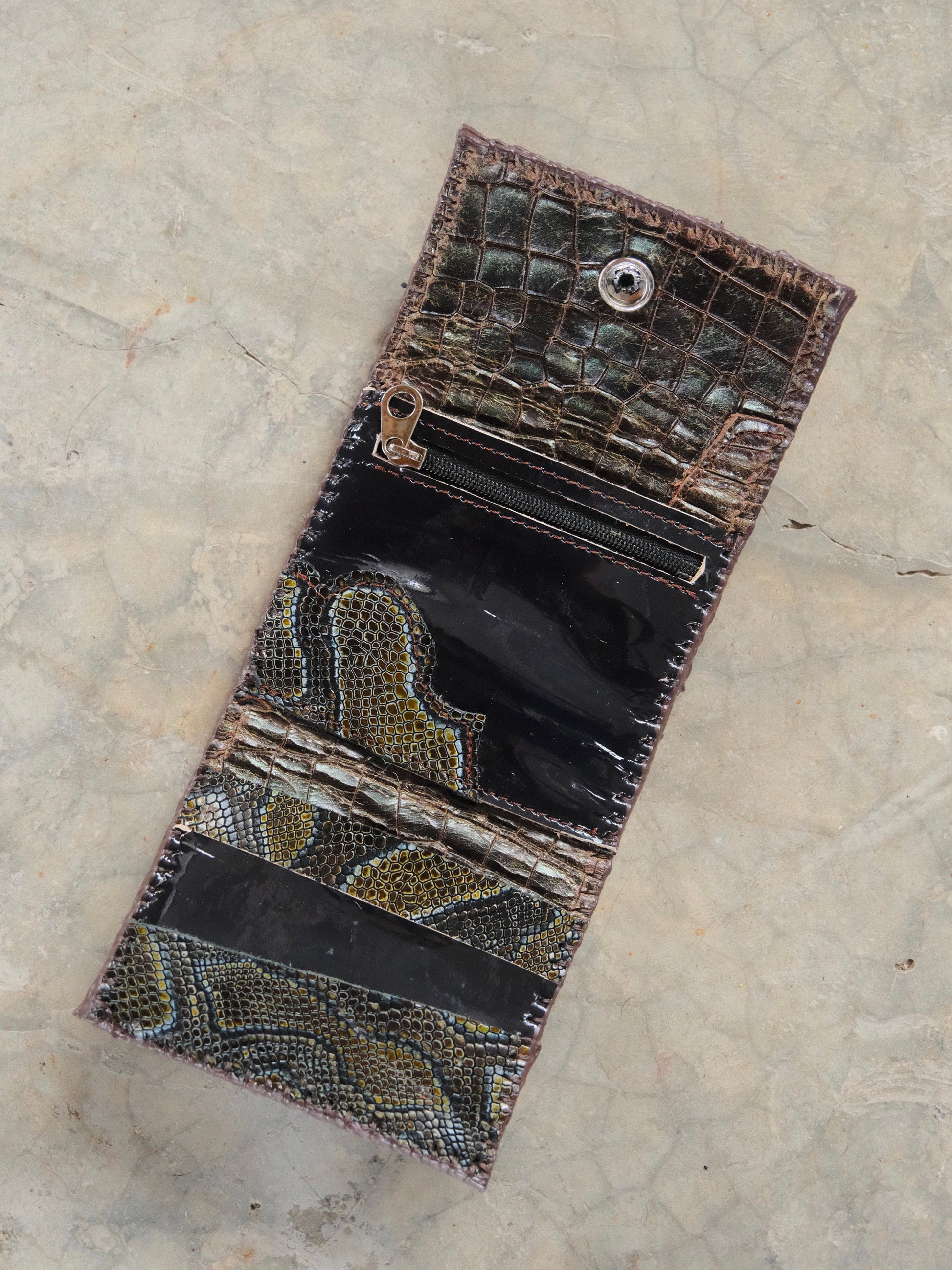 Cartera TUTI hecha con pedacera de piel de textura imitación serpiente y charol.